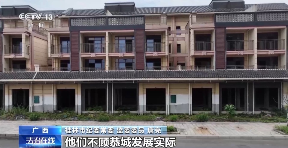 桂林市纪委常委、监委委员 唐亮:这起问题的发生,主要还是县委原书记邓晓强等人政绩观出现了偏差,他们不顾恭城发展实际,盲目决策搞“一言堂”,强行推动项目建设,造成了巨大的资源浪费,也严重损害了政府的公信力,破坏了恭城的政治生态。项目实施过程中监督管理缺失,财政、审计等监督部门没有正确履职。项目烂尾后,职能监管部门缺乏责任担当,存在观望等待的思想,导致部分房产不能如期交付,已经交付的不能办理产权证,群众的诉求没有得到妥善回应。