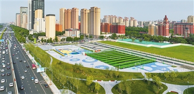 近日,位于河西区黑牛城道和解放南路交口的一座口袋公园亮相,为周边居民提供运动和游玩的新去处。(天津日报记者 赵建伟 摄)