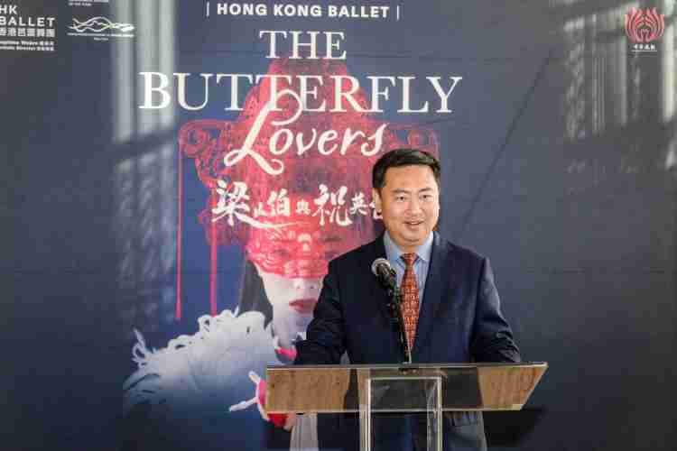 陈立总领事出席“中华风韵”芭蕾舞剧《梁山伯与祝英台》纽约首演招待会并致辞。