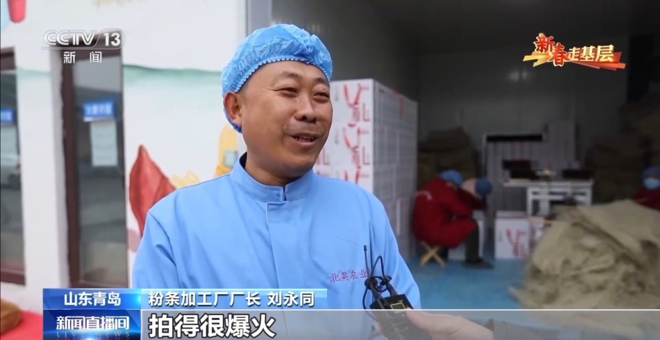 粉条加工厂厂长 刘永同:在网上看到他们拍这个短视频,拍得很爆火,所以我们就想过来看一下,结果来了以后发现这边农产品很丰富,所以说我们就有了想法建厂。