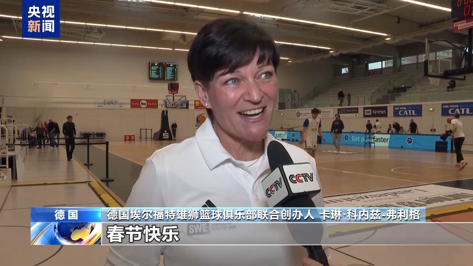 德国埃尔福特雄狮篮球俱乐部联合创办人 卡琳·科内兹-弗利格:我觉得非常棒,因为我本身很喜欢国际化的东西,我总是很感兴趣、想了解,所以我很开心,也很自豪,能够把它和体育连接起来。愿大家在马年能像骏马一样充满力量,昂扬向前,春节快乐。