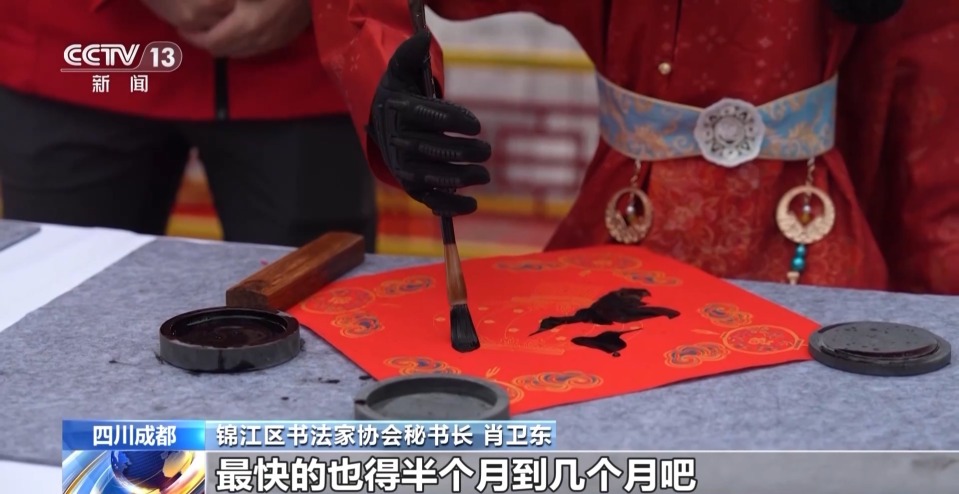 成都市锦江区书法家协会秘书长 肖卫东:它融合了楷书、隶书等笔法,所以转折、牵连、运笔的“轻重徐疾”都相对丰富。尤其在写书法的过程中,节奏、力量的控制是整个学习书法的人面临的最难部分,人要学,最快也得半个月到几个月,实际上机器人学会写的时间是一分钟以内。
