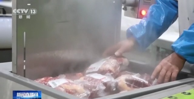 数据显示,2025年,全国畜牧业生产形势较好,猪牛羊禽肉产量突破亿吨。在内蒙古鄂尔多斯市乌审旗,经过严格检疫的牛羊肉通过真空包装锁鲜,迅速转入-28℃低温速冻冷库保存,依托专业冷链物流发往全国。
