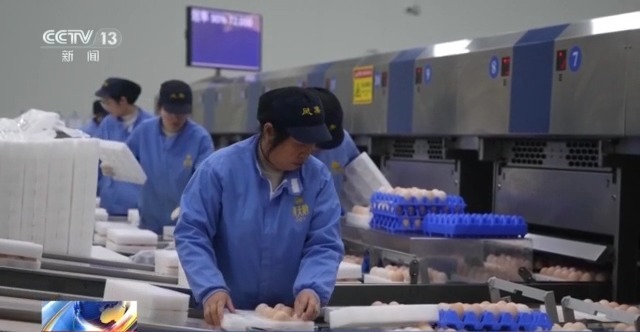 在浙江长兴的鸡蛋生产车间,全自动生产线高速运转,从鸡舍产出的鲜蛋,通过密闭式中央输蛋线无缝输送到蛋品车间。