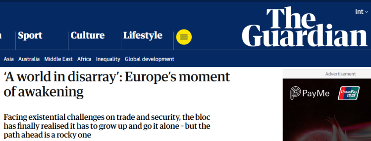 英国《卫报》11日称,在特朗普时代,欧洲从未像现在这样缺乏安全感。随着美国日益变得不可靠,欧洲也日益认识到,必须减少对美国的依赖。近期发生的一系列事件表明,欧洲试图讨好美国并不能带来实质性影响力。