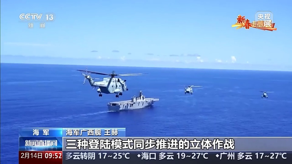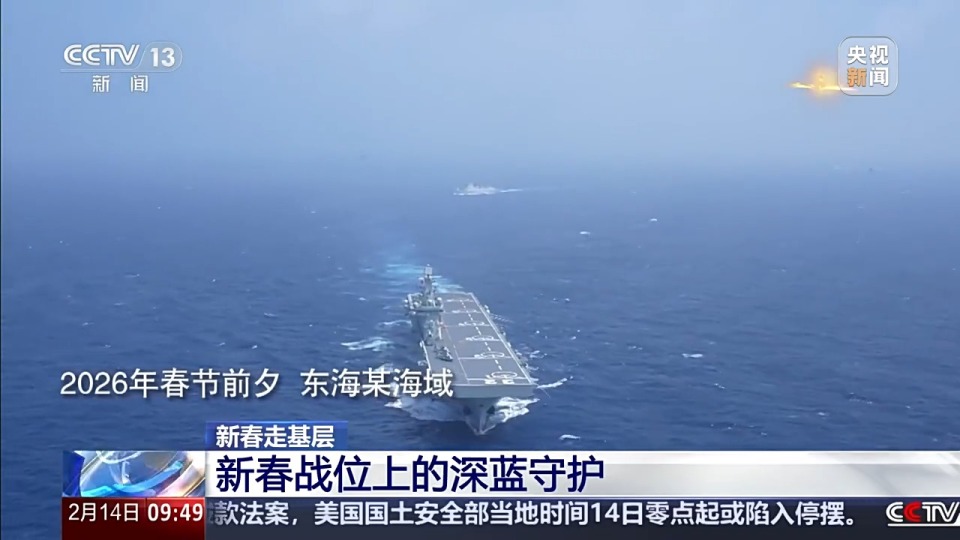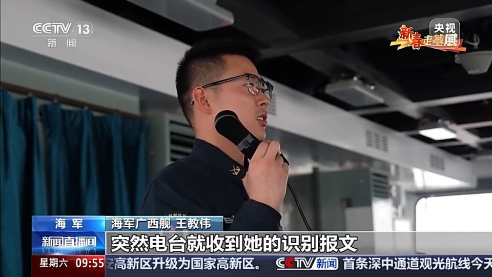 春节前夕,上海某军港,海军数艘战舰驶离码头,向预定海域前行。该编队的指挥舰是075型两栖攻击舰广西舰,总台《新春走基层》的记者随舰出航。跟着记者登上广西舰,走近这些春节期间坚守战位的海军官兵们。