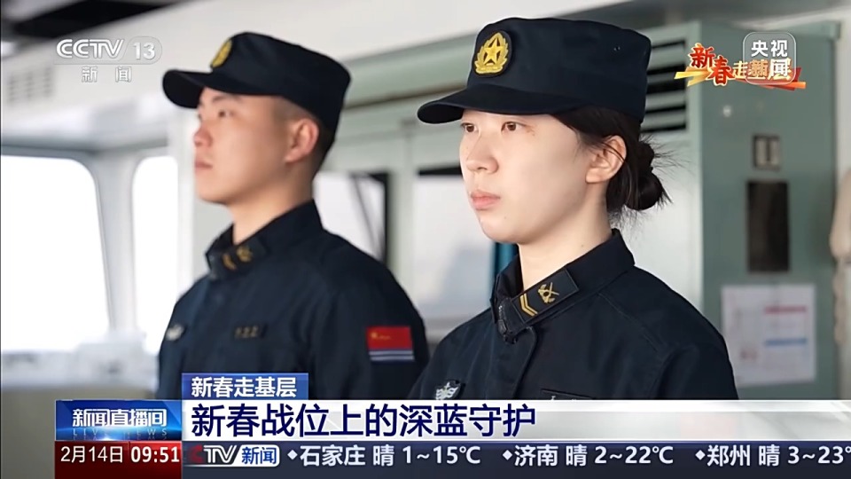 蔡岚:这已经是我连续第四年在舰上过年了。在我们舰上,全时待战、随时能战的战备意识早就刻进了每个官兵的骨子里。我们舰上有一句话:舰行万里,家在心中;守好深蓝,就是守好家里的年夜饭。