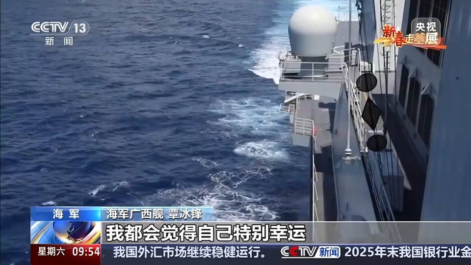 王教伟:除夕对于老百姓来说关键词可能是团聚,而对我们军人来说,我觉得更多的是责任,是守护。在海上执行任务,尽管不能和家人在一起,但是我们都能感受到彼此的牵挂。作为一名新时代的海军战士,我们用深蓝的航迹告诉祖国:请放心,山河无恙,有我护航!