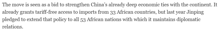 文章表示,这一重要举措不仅是贸易政策的安排,也将进一步增强中国与非洲国家之间的长期合作纽带。