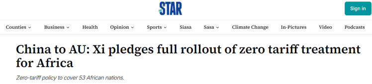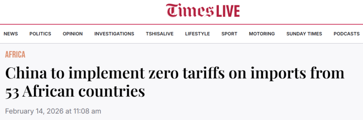 肯尼亚《星报》报道称,中方在第39届非盟峰会召开之际,提出对53个非洲建交国实施零关税的举措,是在此前政策基础上的进一步推进。文章称,“这是一项意义深远的贸易承诺”,相关措施的落地,标志着中国同非洲大陆的经贸合作将迈入新阶段。