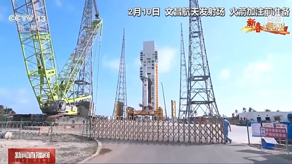 总台央视记者 王晓丹:由于长征十号的测发指控大楼还在建设当中,为了确保各项试验任务如期推进,科研人员暂时把火箭后端测发系统临时搭建在集装箱方舱内,在这里对火箭进行发射前的各项远程控制、测试和检查等工作。