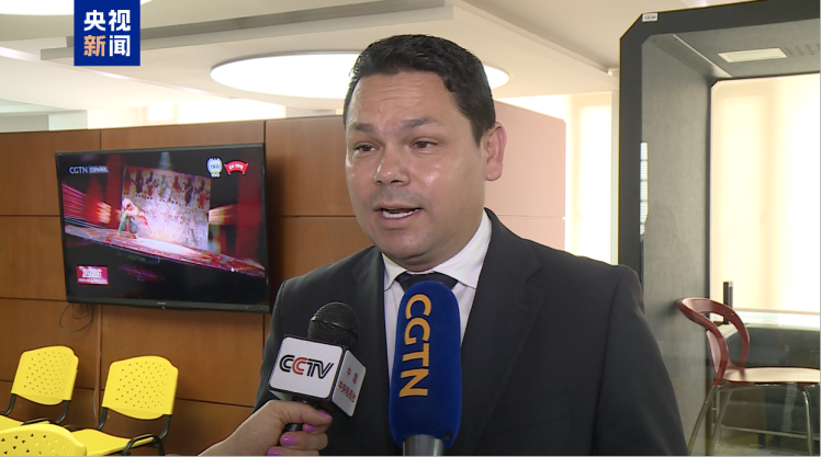 △哥伦比亚首都频道负责人阿雷纳斯接受总台采访