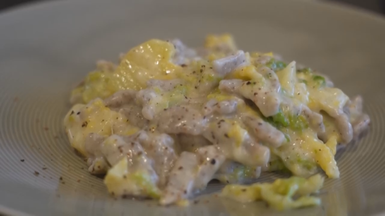 而成就这道菜口感的关键,是酱料的搭配。武基切维奇和古里尼透露,三种当地生产的奶酪:自家制作的法莫吉奥奶酪、蒙特格罗托奶酪,以及法莫吉奥格兰纳奶酪,混合帕尔马干酪调制而成的酱料,让整道菜的风味完美融合,口感层次拉满。