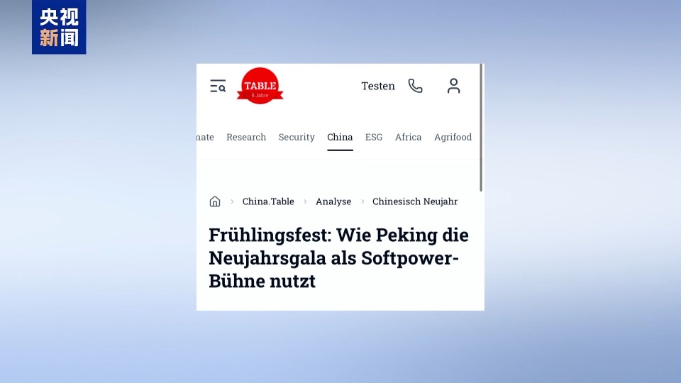 德国杂志《table Briefings》发表题为《春节:北京如何通过春晚展现软实力》的文章,报道称“马年春晚呈现了一系列机器人和人工智能表演。中国国家电视台借此展示科技实力,并展现了‘中国制造’的自豪感”。