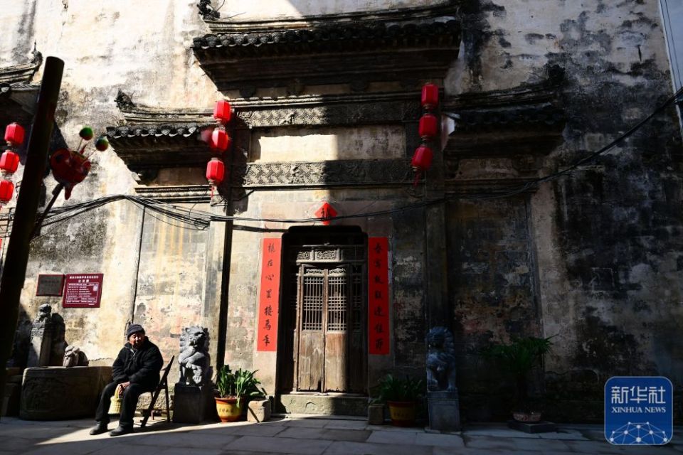 1月29日拍摄的瞻淇村内的祠堂敦睦堂(无人机照片)。