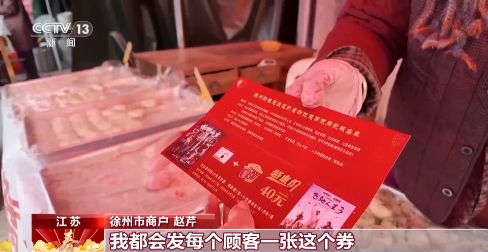 徐州市商户赵芹:每个顾客上这儿来,我都会发一张这个券,让他们去消费,让他们去看电影。