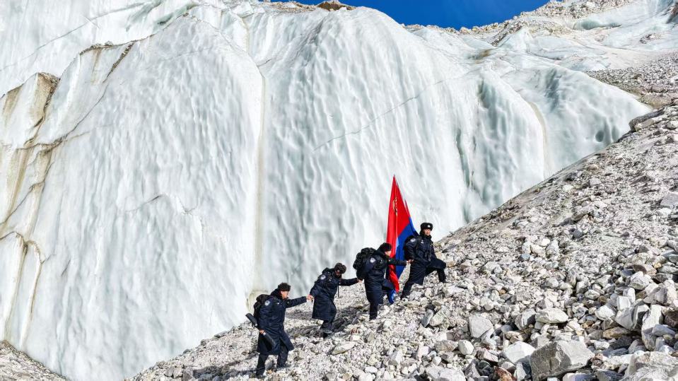 梁健仔找块石头坐下,脱掉鞋子,倒出里面的砂石,搓着冻得发红的脚:“6年了,有时候也觉得苦。但每次巡逻站到这冰川脚下,又会觉得,能守护这么壮阔的地方,心里头挺踏实,也挺自豪。”