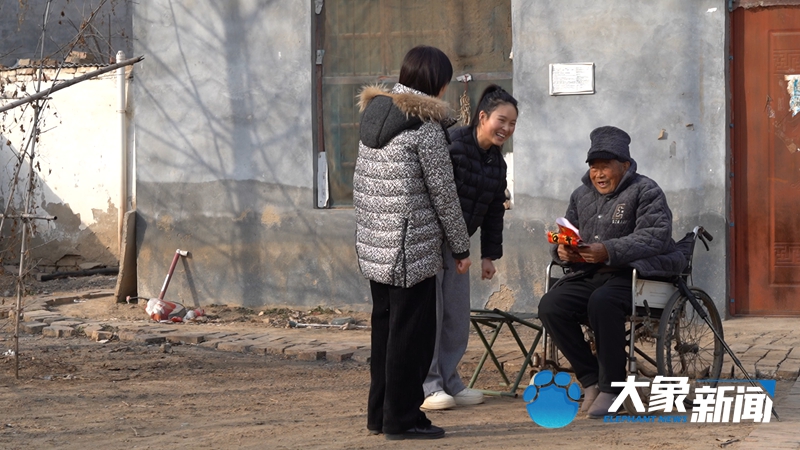 车进不去,她拎着大包小包一路小跑。一进门就像回自个儿亲戚家,用当地方言打招呼:“爷、奶,恁儿、恁儿媳托俺给恁送吃的!”老两口看着满桌东西笑开了花。