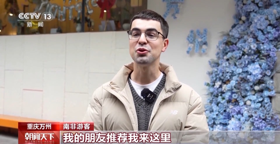 南非游客:我的朋友推荐我来这里,她说上次没玩够。这里的美食太惊艳了。我打算去看看万州大瀑布,好好感受一下中国的春节。