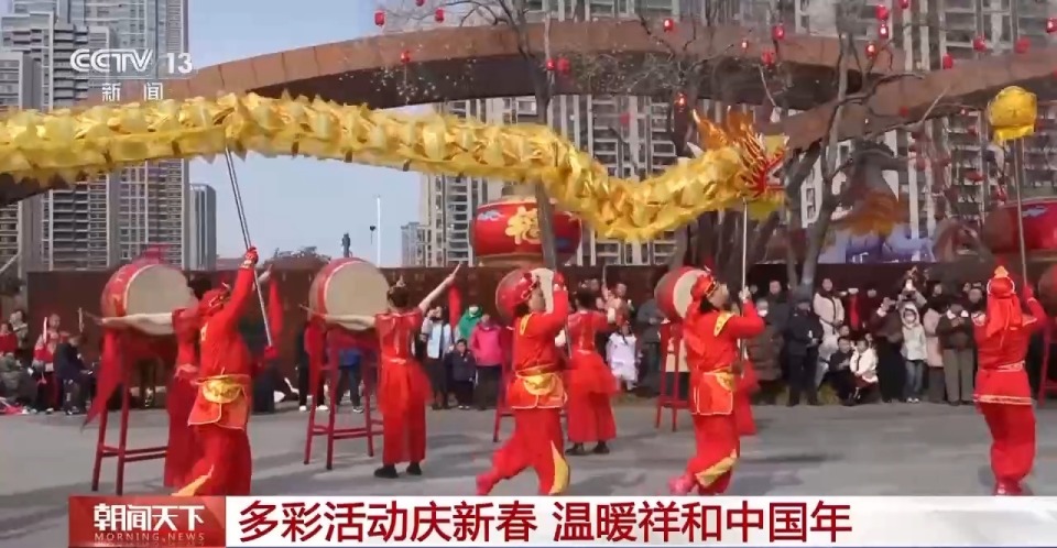 在安徽凤阳,国家级非遗凤阳花鼓热闹开锣。欢快的鼓点、喜庆的节奏,一下子就把过年的气氛拉满了。