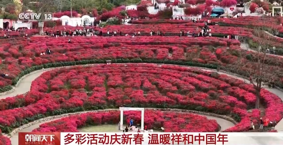 在广西南宁青秀山,层层叠叠的花海扮靓这个新春佳节,大家或沿着花间步道悠闲漫步,或在花园景观前拍照打卡,感受温暖的春光。