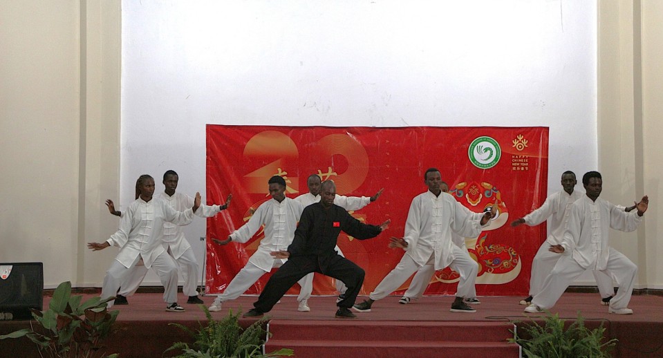 王金鑫(右三)和学生参加第八届肯尼亚图尔卡纳文化节