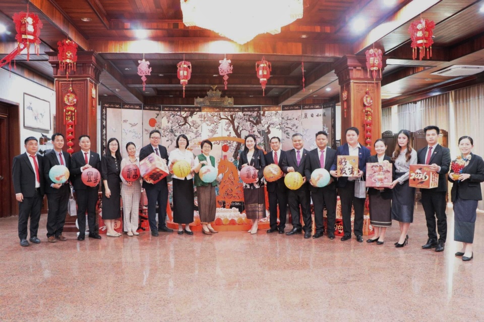 方虹大使出席中老建交65周年暨中老友好年主题标识设计大赛颁奖仪式暨2026年老挝“欢乐春节”庙会启动仪式。