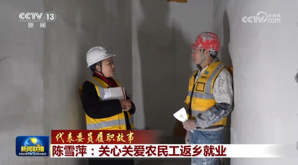 央视网消息(新闻联播):《代表委员履职故事》带您认识一位从事了30多年油漆工工作,一直关注农民工权益保障问题的全国人大代表——陈雪萍。
