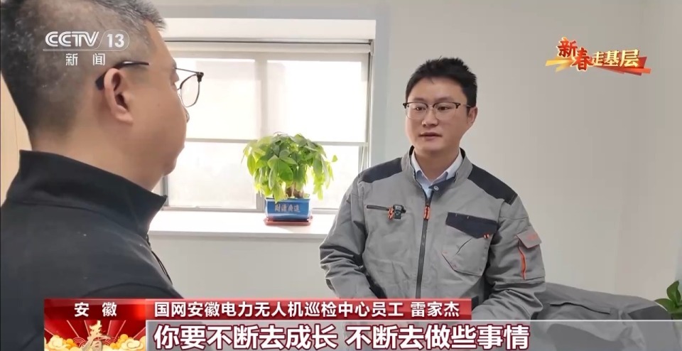 国网安徽电力无人机巡检中心员工 雷家杰:第一次飞,就把无人机搞坏了。一架好几万,顶我一年的工资,当时就感觉非常害怕。现场不敢飞了,一看飞机离塔那么近,我手抖,后来腿都抖。