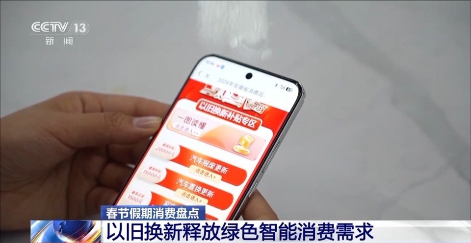 今年春节假期,以旧换新也在持续释放消费需求。从政策支持到消费理念升级,绿色智能消费不仅点燃了市场活力,更在重塑百姓的日常生活方式。