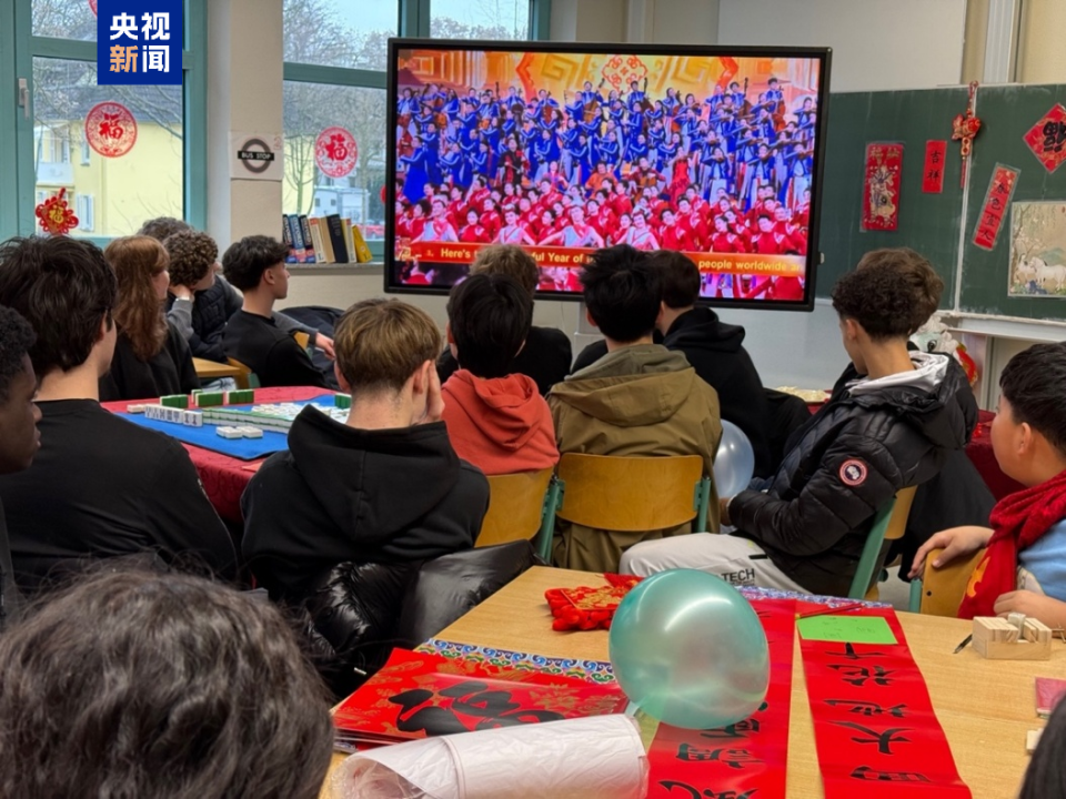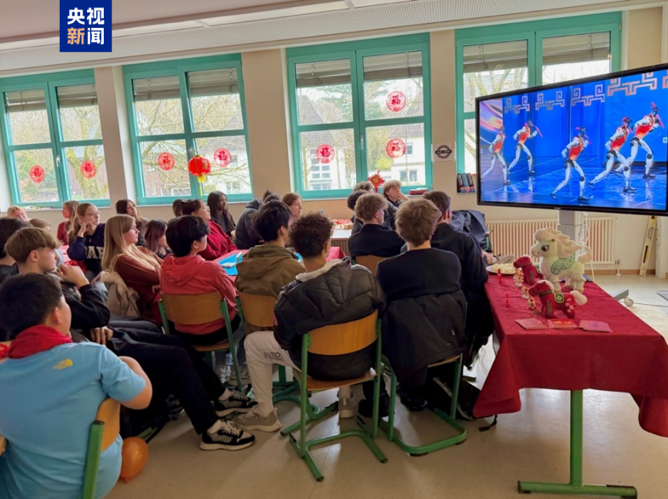 农历马年春节期间,中央广播电视总台2026年春节联欢晚会精选节目在德国多特蒙德市一所文理中学课堂首次亮相。包括德国伯乐中文合唱团成员在内的50余名高中生集中观看节目片段,共同体验中国春节文化魅力。