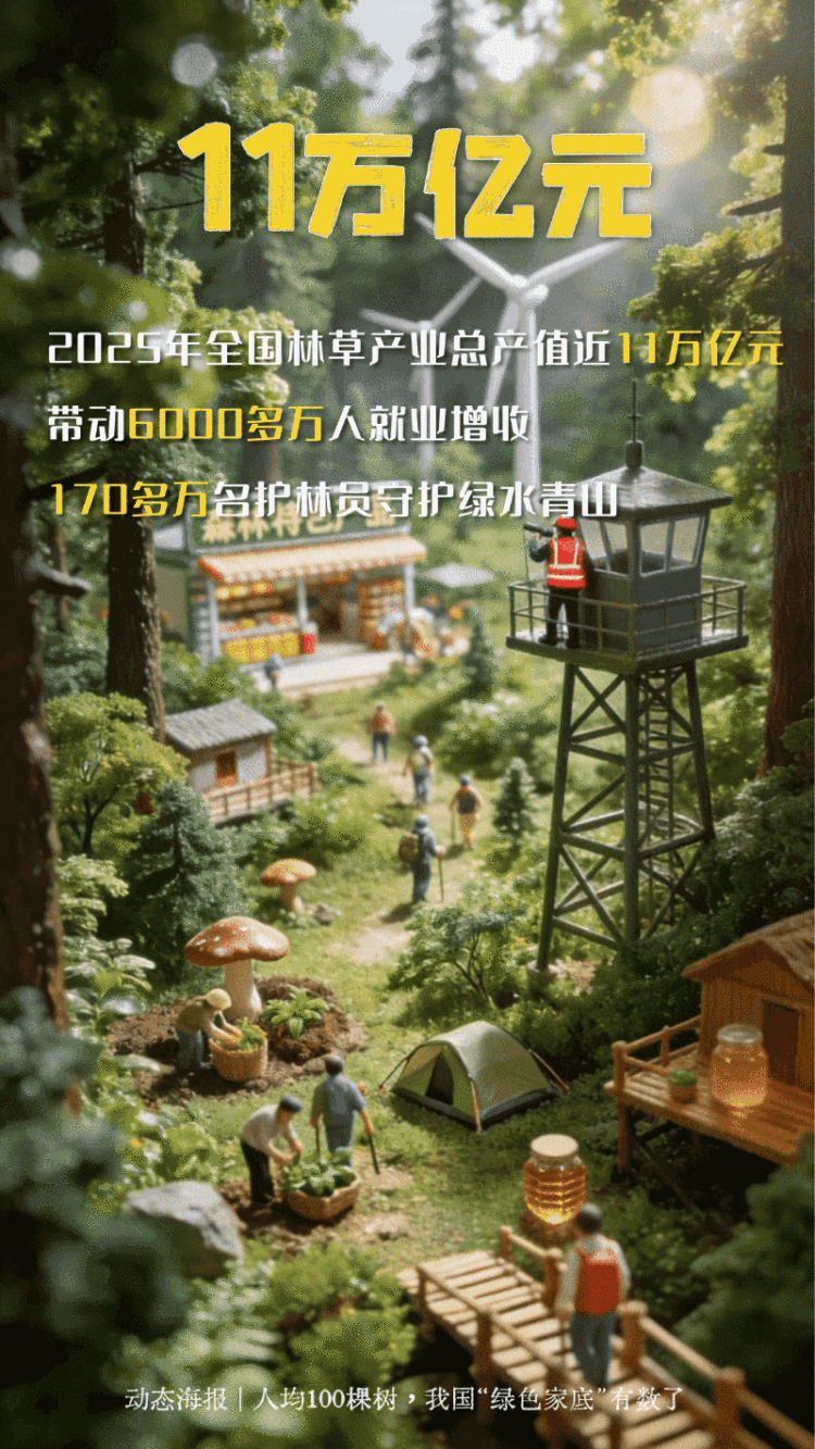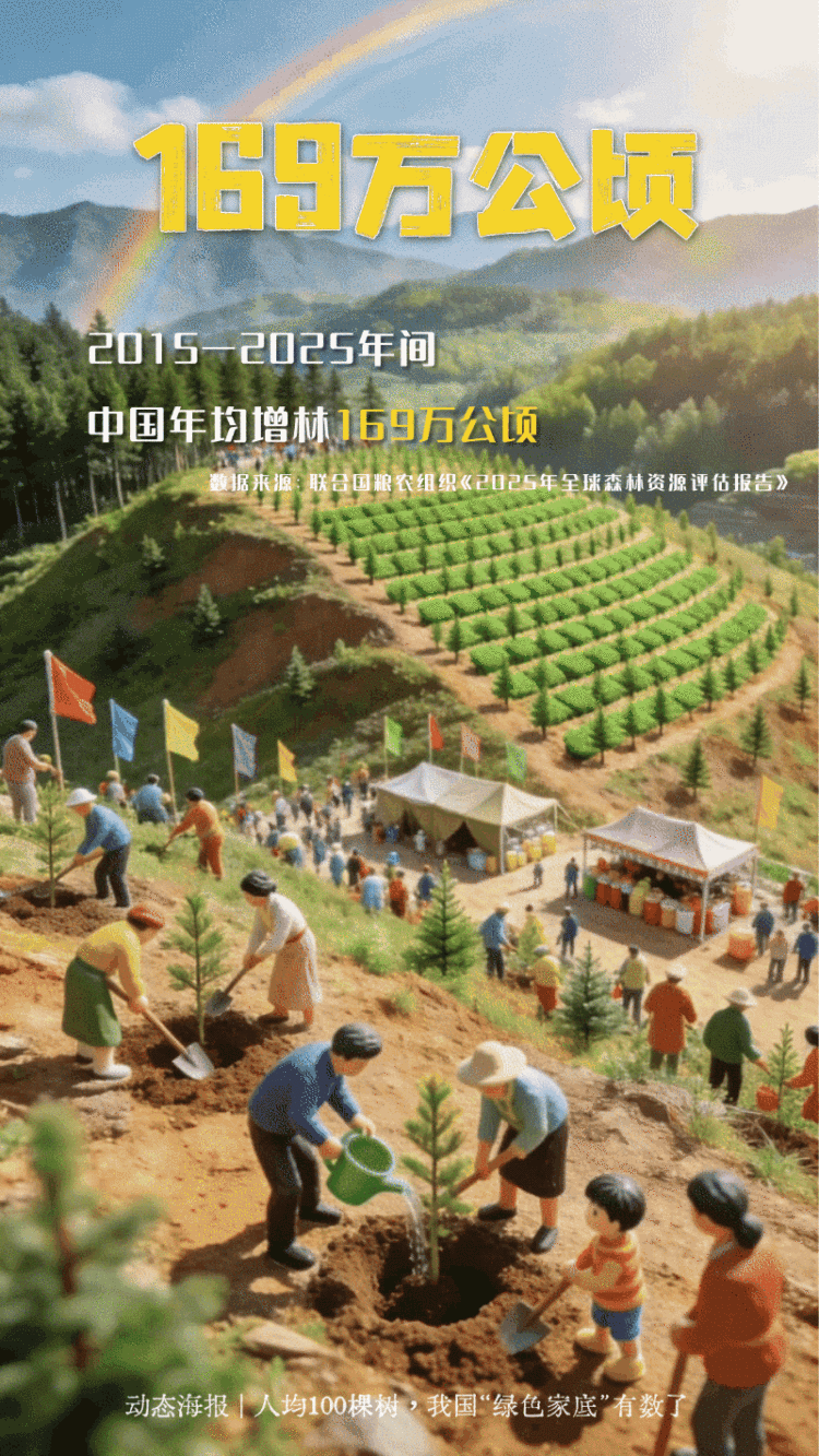 编者按:国家林草局最新数据显示:目前全国森林总面积达36.14亿亩;其中“十四五”时期,我国造林1.85亿亩,面积与福建省相近,成为全球增绿最多最快的国家。一组海报了解我国“绿色家底”和绿色奇迹。
