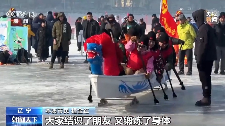作为“全民健身大拜年”活动的全国主会场之一,辽宁本溪太子河冰封的河面变身热闹的赛场,速滑挑战赛、冰上龙舟竞速、冰上爬犁等各类趣味冰雪项目火热开展;河岸边,太极扇、秧歌等民俗体育展演吸引上千人参与。欢笑声、喝彩声此起彼伏,洋溢着新春的喜庆与运动的活力。活动共吸引超2500名市民、冰雪运动爱好者踊跃参与。