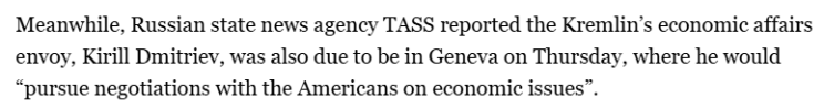 同时,俄总统特别代表德米特里耶夫也于26日在日内瓦继续与美方代表进行俄美经济工作组会谈。