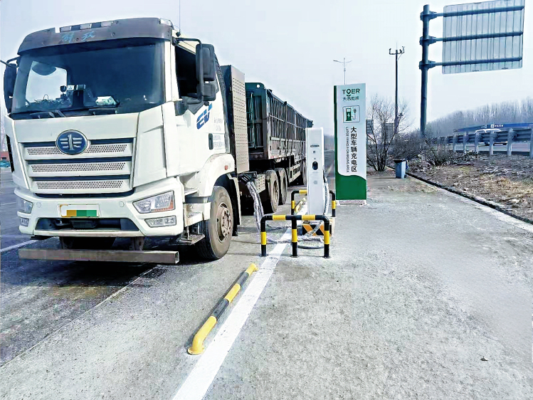 新能源重卡在天津高速充电站充电
