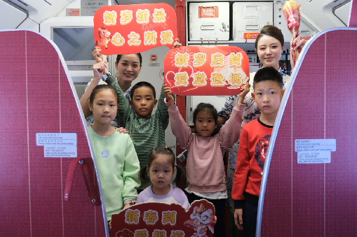乘务组与小旅客合影