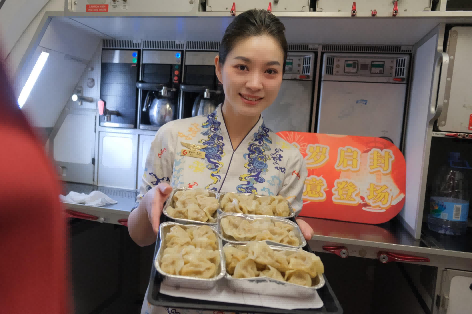 在GS7895天津—广州的航班上,天津航空为旅客们准备了寓意团圆美满的饺子。作为刻在中国人骨子里的年味符号,一碗热气腾腾的饺子,暖了旅客的胃,安了旅客的心,也慰藉了每一份奔赴团圆的牵挂,让万米高空的归途满是家的味道。