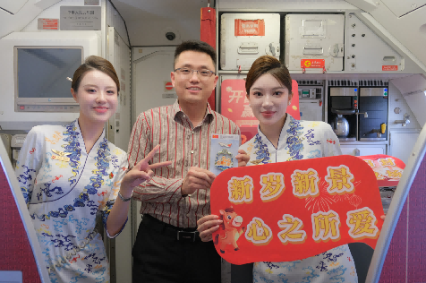 瑞马迎春,福启新程。新春消费热潮持续涌动,万千旅客的归家旅途暖意升腾。为积极响应民航局2026“乐购新春”全民消费活动号召,传承中华传统民俗文化,近日,新海航天津航空在GS7895天津—广州、GS7522杭州—乌鲁木齐的航班上,精心打造“乐购新春,温暖护航”主题客舱活动,将新春购物的喜悦、阖家团圆的温情与安心出行的守护相融合,在万米高空为旅客奉上年味十足、心意满满的新春归途体验。