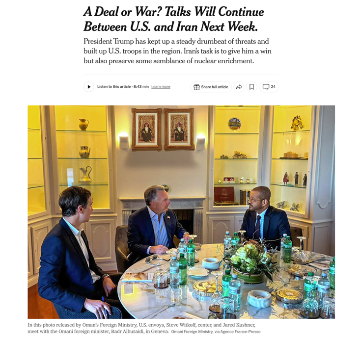 △《纽约时报》报道,负责斡旋的阿曼外交大臣表示26日谈判取得了重大进展,但专家认为,形势紧迫感仍然存在