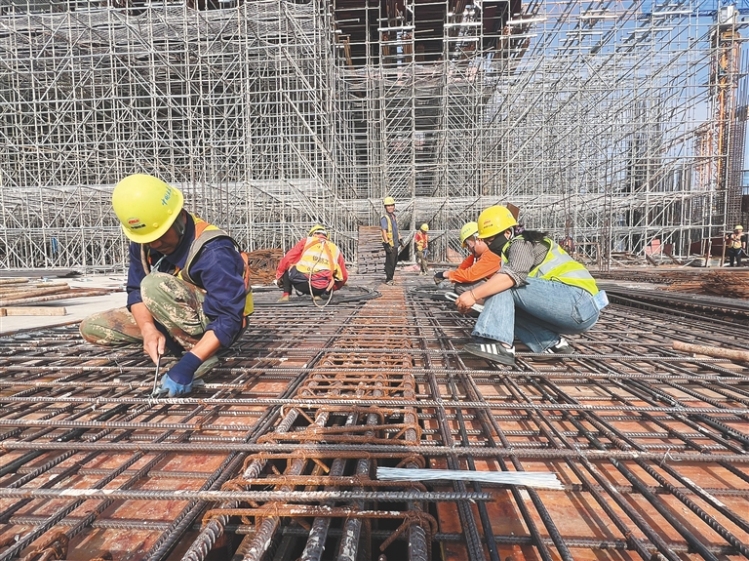 当前,该项目施工已进入塔吊作业与大规模人工施工深度结合的关键阶段,施工现场各类施工机械有序运作,工人们分散在各个作业面紧张施工,项目建设如火如荼推进。“节后项目施工人员陆续返岗,施工高峰期现场作业人员预计将接近2500人。”中国土木工程集团有限公司新海陆岛物流园项目指挥长刘巨龙说。