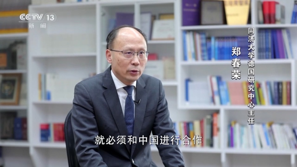 同济大学德国研究中心主任 郑春荣:中国的企业因为创新水平高、速度快,迭代也非常快,而且中国市场庞大,有很多的应用场景给德国企业提供了很多的机会,德企认识到如果想要赶上技术发展的潮流,如果希望能够在国际市场上,在这样技术的发展背景下,继续占领市场的份额,就必须和中国进行合作。