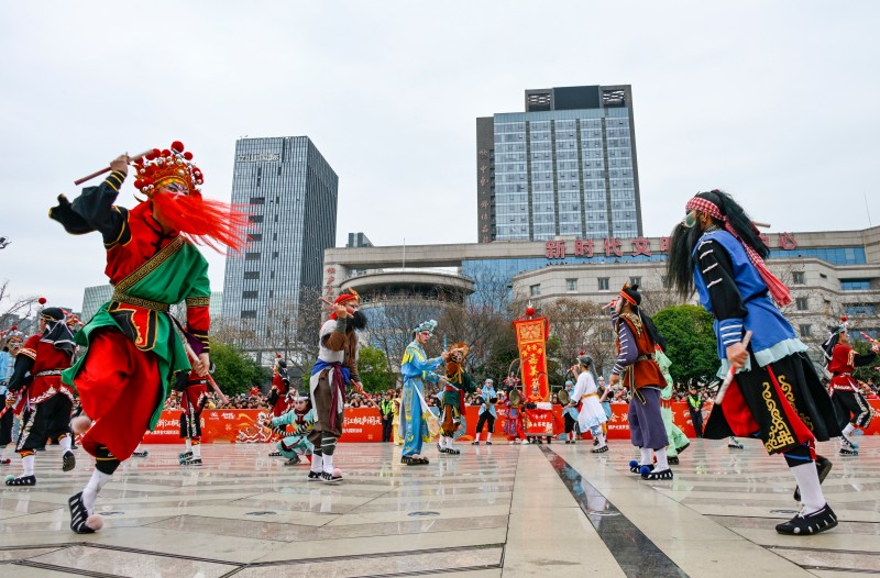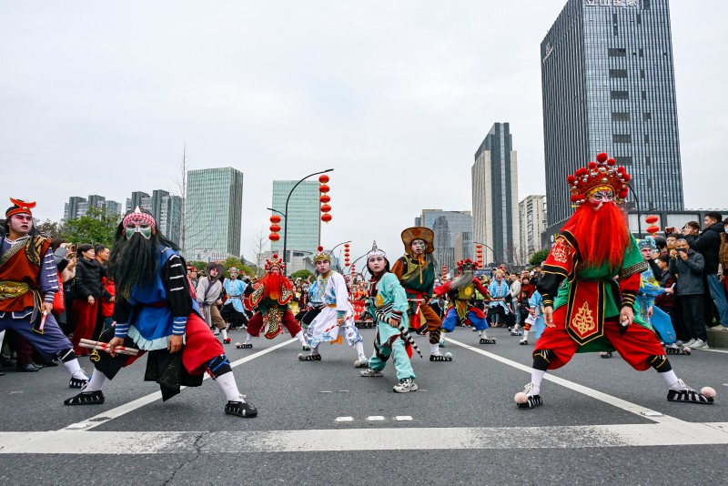 가장 먼저 푸춘강진(富春江鎮) 금가(金家) 판룡(板龍) 공연이 펼쳐졌다. 이 공연은 퉁루 지역 문화를 생생하게 담고 있다. 백여 년의 전통을 이어온 바이장진(百江鎮) 초룡(草龍)은 북과 음악 소리에 맞춰 역동적인 움직임을 펼쳤고, 60명의 용춤 인원이 조종하는 가운데 황금빛 몸체가 햇빛 아래에서 반짝였다. 이어 용등 팀들이 잇따라 등장하면서 비물질문화유산의 정취와 지역 문화의 매력이 십분 드러났다. 마지막으로 성(省) 급 비물질문화유산인 선아오(深澳) 고공 사자춤이 대미를 장식하며, 공연자의 섬세한 조종에 따라 공중에서 현란한 묘기를 펼쳤다.