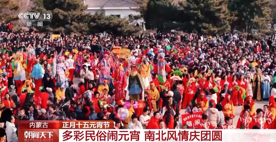 内蒙古各地也举办了丰富多彩的民俗活动,人们在热闹红火的社火表演和浓浓的烟火气中,共度团圆时刻,同享节日欢乐。