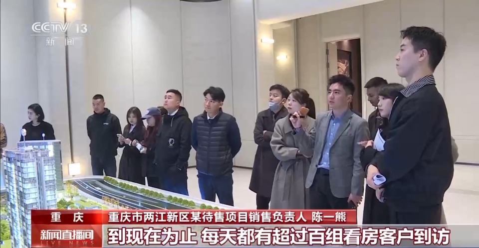 重庆市两江新区某待售项目销售负责人 陈一熊:项目从今年农历春节初八开放,到现在为止,每天都有超过百组看房客户到访,高意向的等待我们开盘选房的客户已经超过了百组。