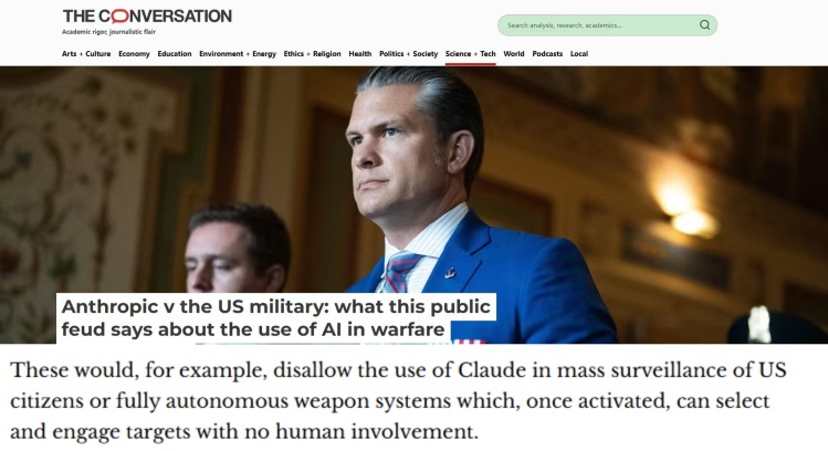 据美国《对话》杂志报道,此次争议的核心,在于Anthropic开发的大型语言模型Claude如何被应用于军事领域。根据公司政策,Claude不得用于对美国公民的大规模监控,或用于一旦激活便可在无需人类参与的情况下选择和打击目标的自主武器系统。