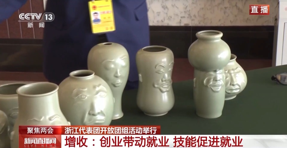 第一个是青瓷花瓶,这是浙江非遗共创平台上卖得很火的一款商品。这个平台是一群返乡青年共同打造的,虽然平台仅成立一年,但已经聚集了80多位手工艺匠人,间接创造就业岗位1000多个,每年为他们带来几万到十几万的收入,这就是浙江提振消费的第一招——增收尤其是用创业带动就业,用技能促进就业,毕竟老百姓的“钱袋子”越鼓,消费的信心才会更强。
