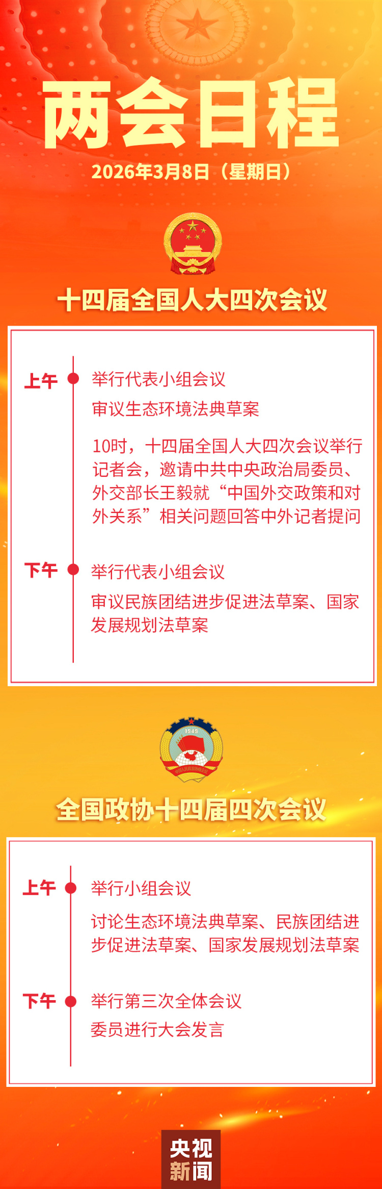 两会日程预告丨3月8日:人代会审议生态环境法典草案等 政协举行第三次全体会议
