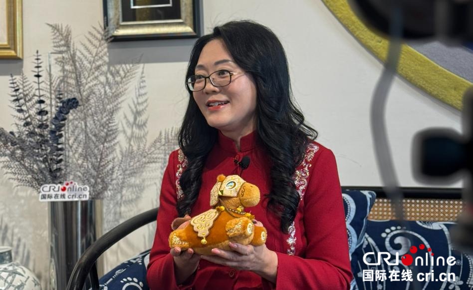 夏华向记者展示太仆寺旗文创小马“骏程” (郭维真 摄)