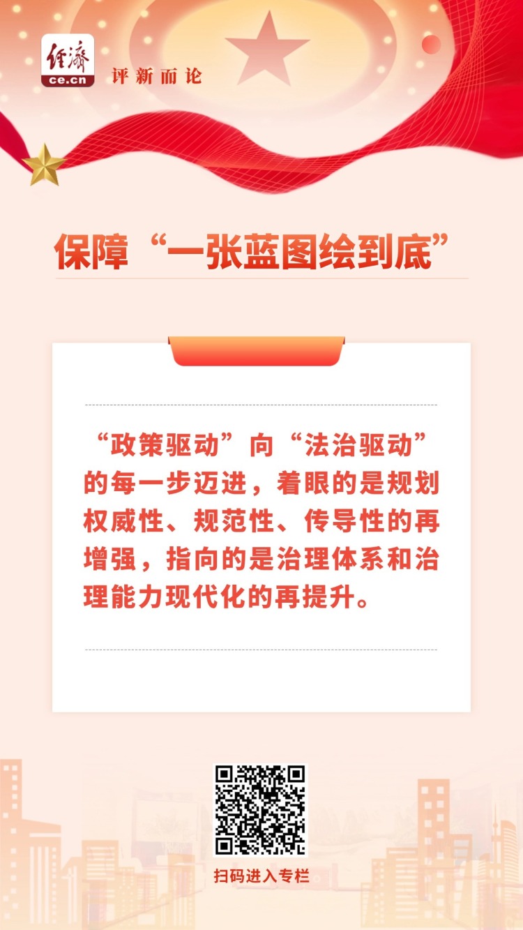 法治护航,“政策驱动”向“法治驱动”的每一步迈进,着眼的是规划权威性、规范性、传导性的再增强,指向的是治理体系和治理能力现代化的再提升。往深里看,它彰显的是党的领导、人民当家作主、依法治国的有机统一。