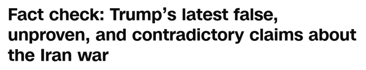 当地时间3月10日,美国有线电视新闻网报道指出,美国总统特朗普9日在新闻发布会上针对伊朗所发表的言论是虚假、未经证实且自相矛盾的。